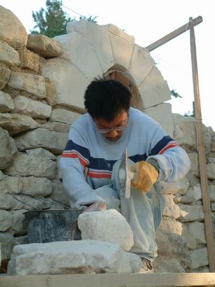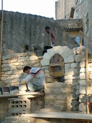 | Montage du mur à la chaux St Astier; les arcs sont taillés à la main ajustés au chemin de fer scellements assuré par un coulinage à la chaux | ||||||||||||
